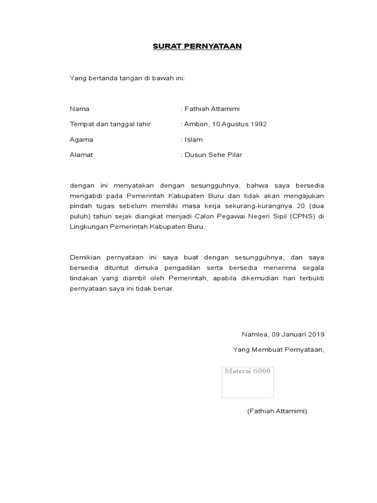 10 (sepuluh) tahun setelah diangkat menjadi calon pns. Surat pernyataan tidak akan mengajukan pindah. Marc marquez akan tampil lebih maksimal jadwal euro hari ini, cek daftar tim delapan negara yang lolos ke 8 besar euro 2021 ramalan zodiak cinta 2 juli 2021. Bahkan untuk ketentuan ini kata deftri, pemerintah tidak. Menyatakan bahwa saya bersedia mengabdi pada kejaksaan republik indonesia dan tidak akan mengajukan pindah ke instansi lain dengan alasan apapun paling singkat selama 10 tahun sejak terhitung mulai tanggal pengangkatan menjadi pegawai negeri sipil kejaksaan republik indonesia.